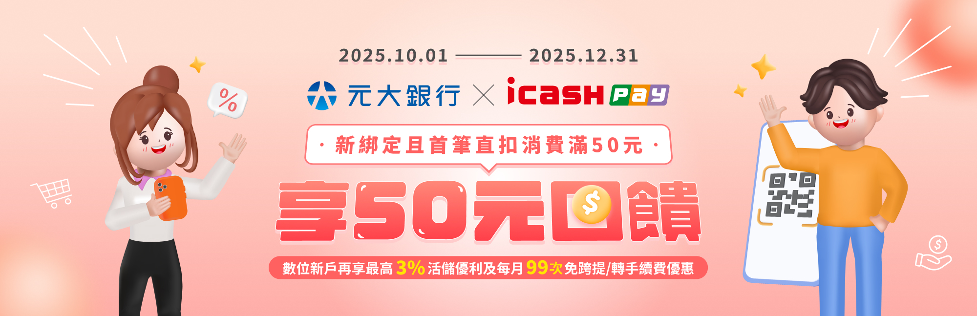 【icashPay連結銀行帳戶服務,每間銀行限定連結一個存款帳戶】