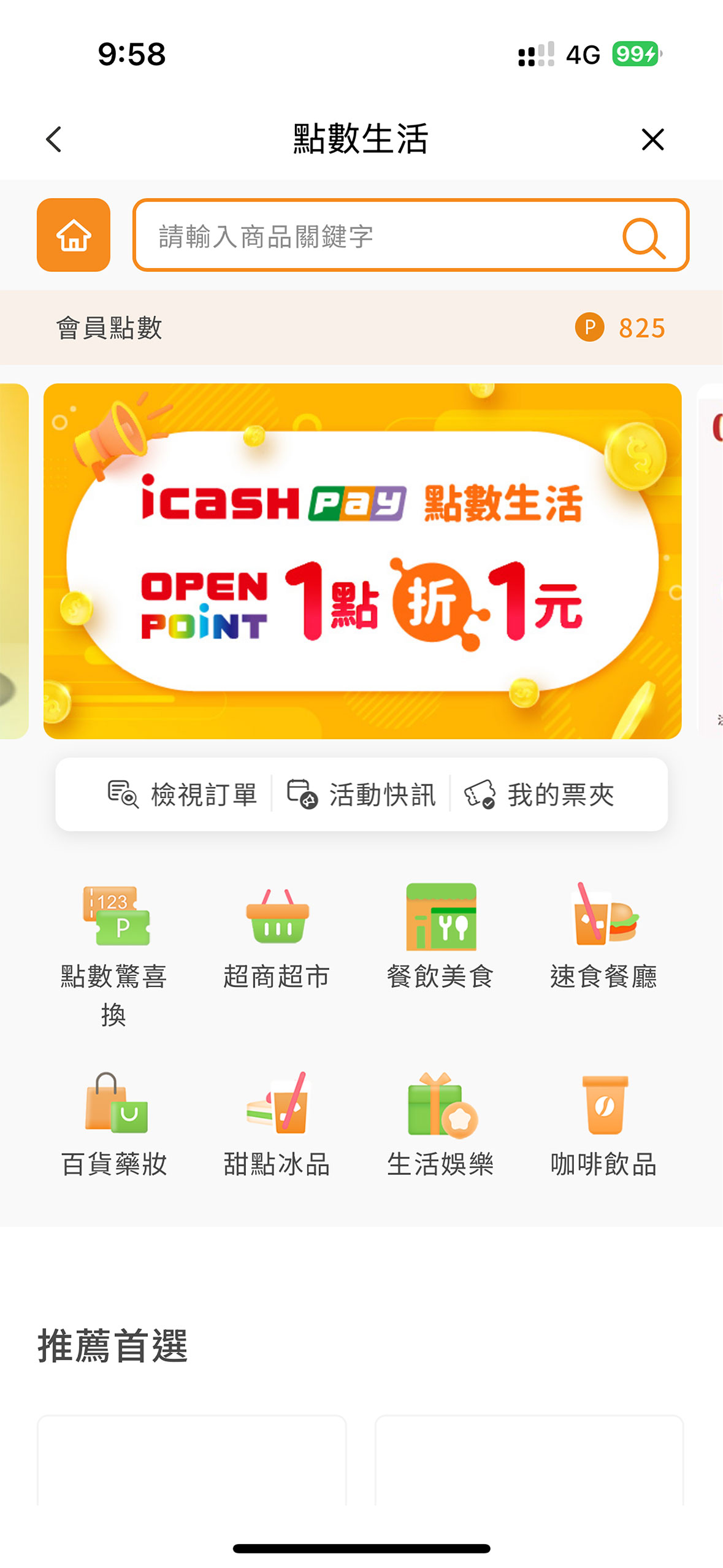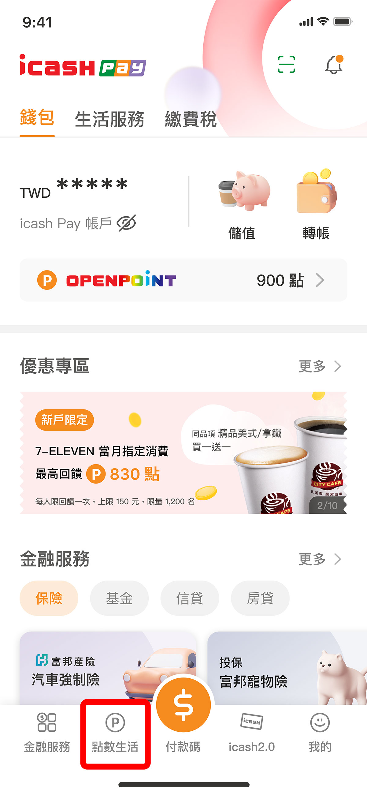 在icash Pay的APP首頁點擊「點數生活」,選擇喜歡的票券,使用OPEN POINT點數來兌換這些超值優惠的票券,就可以拿這些票券去消費使用囉!