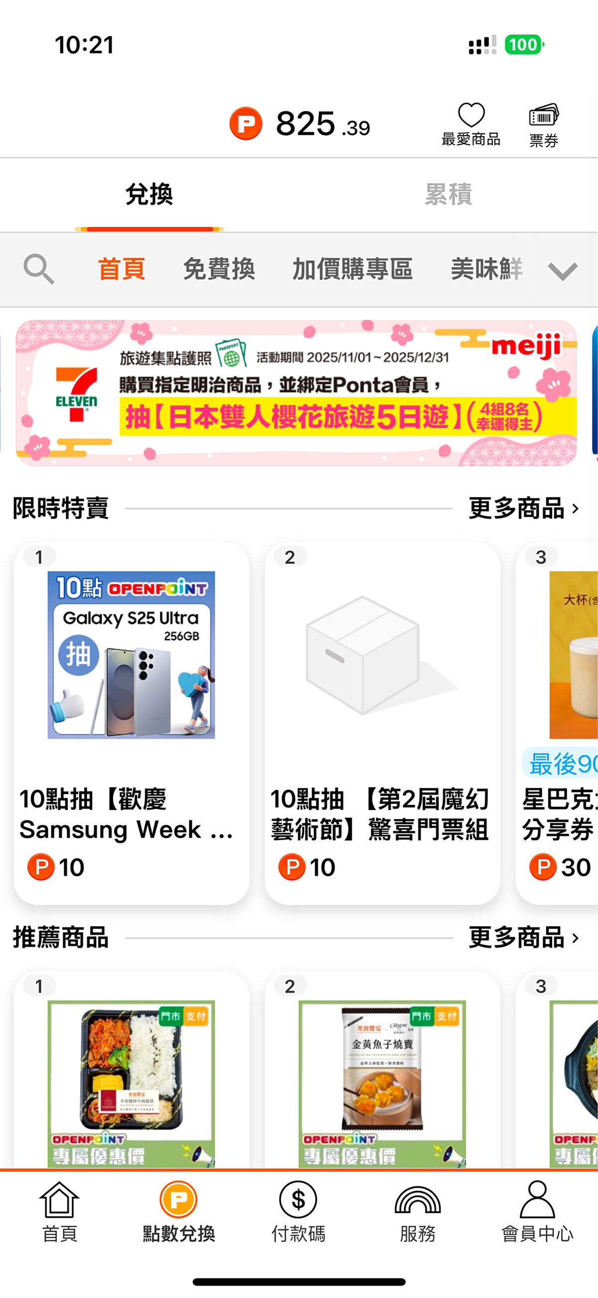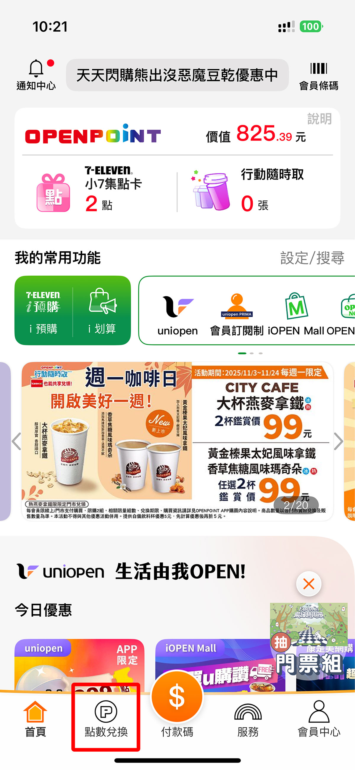 也可以在OPEN POINT的APP首頁點擊「點數兌換」,使用OPEN POINT點數來兌換喜歡的商品或品牌票券!