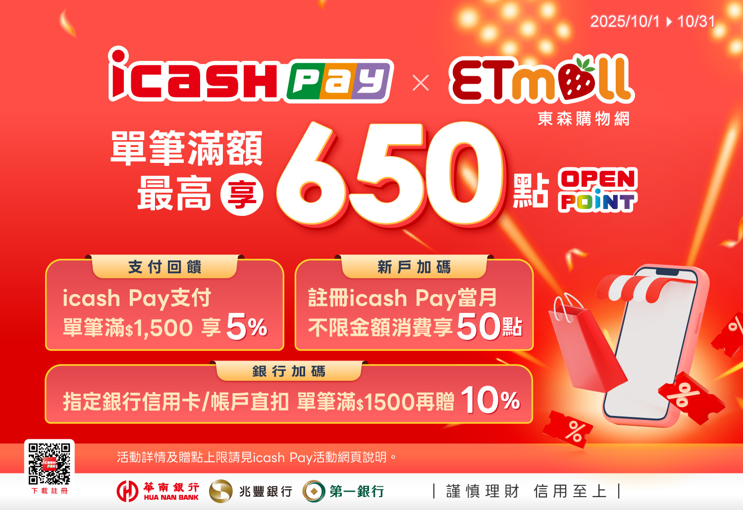 icash Pay東森購物網ETmall最好Pay最高享回饋650點OPENPOINT