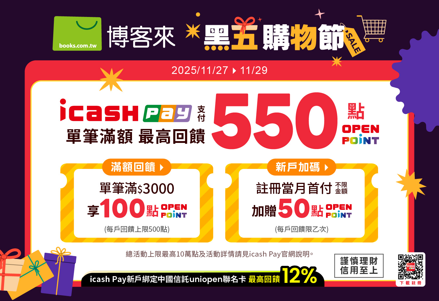 - 本活動之消費認定將分別依博客來線上購物支付實際交易金額、發票為主,回饋之加碼OPENPOINT計算至小數點後第二位(依小數點後第三位四捨五入計)。交易金額僅限一般商品交易,不含OPENPOINT點數折抵金額等,且須為單筆全額使用icash Pay 支付。如交易經取消、退貨及退款,將不予贈點,若於活動贈點發送後退貨(包含部分退貨),將會回扣以該筆交易計算之全額活動點數。