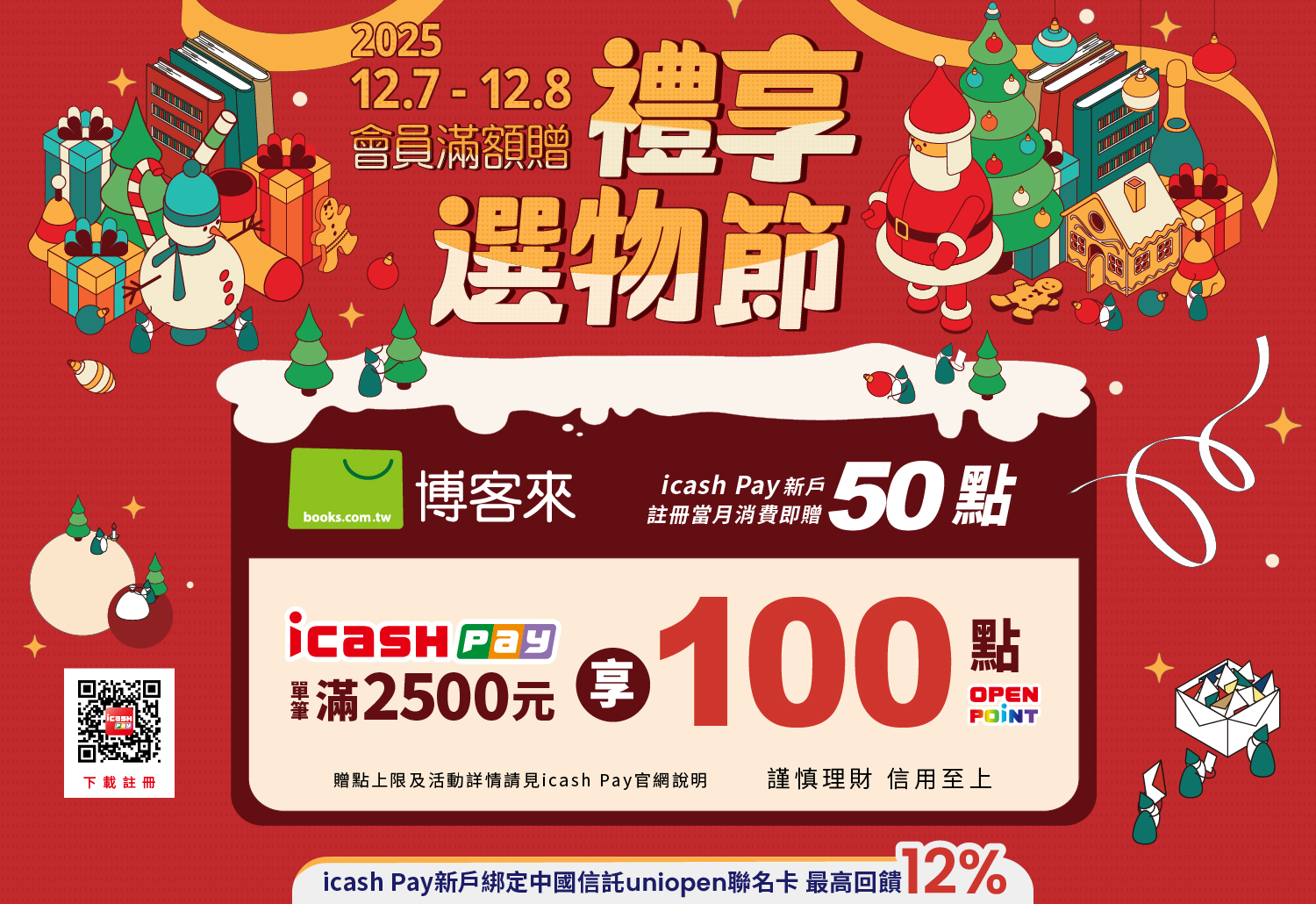 同享【icash Pay新戶綁定中國信託uniopen聯名卡加碼最高12%回饋】