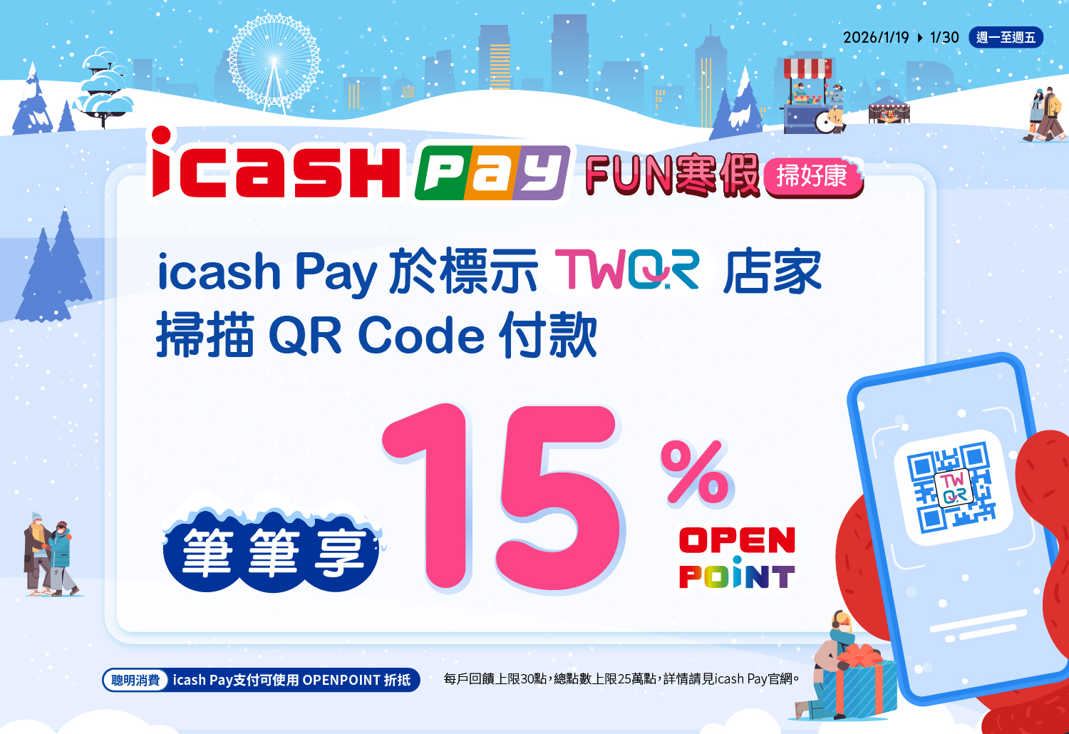 FUN寒假掃好康 平日TWQR用icash Pay筆筆回饋15%