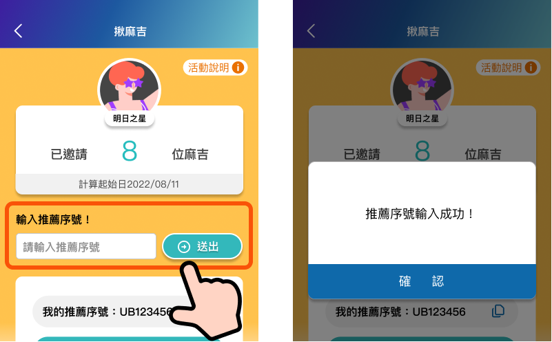 ※活動期間內由指定推薦人、通路門市或指定位置公布之序號,始為有效序號。若輸入之推薦序號非有效序號,將不計入活動資格。